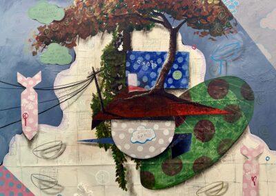 Industrial Revelations, 48×60″ acrylics, spray acrylics, graffito pencil, silkscreen print on canvas
